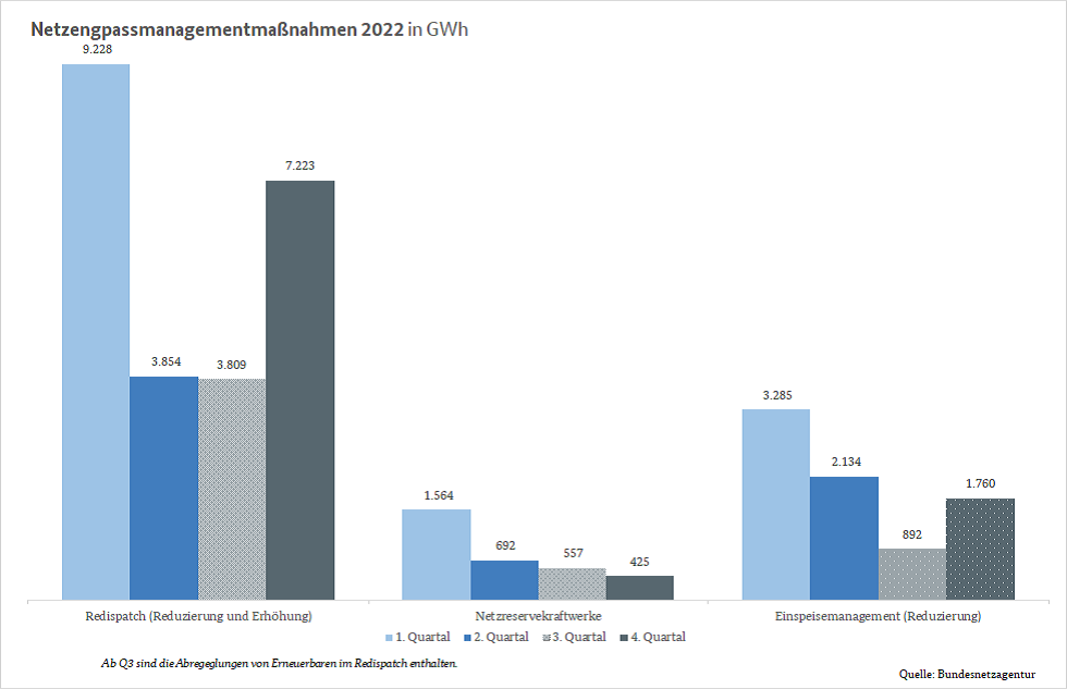 Because there is a delay between the notification and the actual balancing of the measures, data submitted to the Bundesnetzagentur is updated on a regular basis. This is the reason why adjustments might also be made to data from a quarter that had already been evaluated.